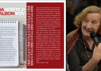 Read MoreActrița Ada d'Albon, nepoata scriitorului Mihail Sadoveanu, a lansat la București o nouă carte a sa, „Fără titlu”, publicată de editura Eikon. „Nu scriu frumos dar scrisul e prelungirea inimii mele și, în momentul ăsta, prelungirea sufletului meu deșănțat. Ești de vină; pianul pe de o parte, dar mai ales privirea ta, în acea zi la ...